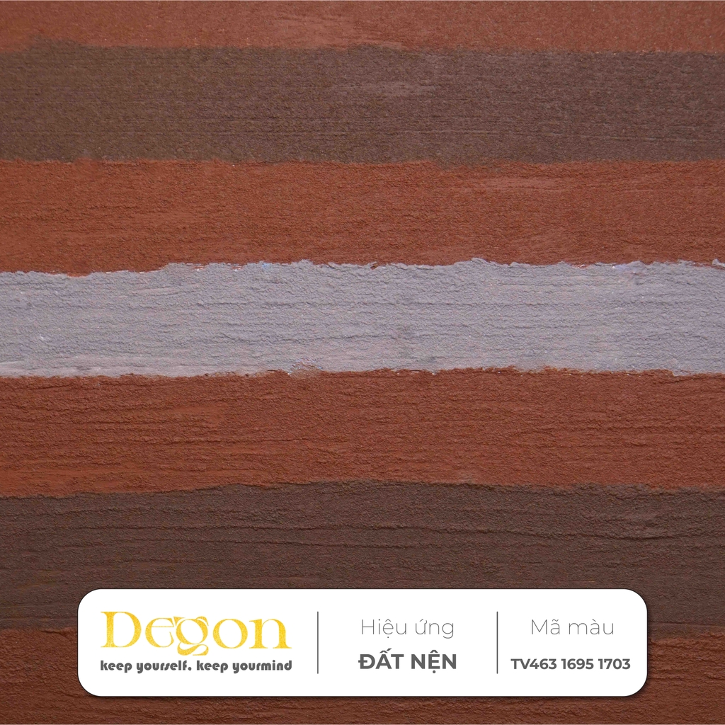 Không chỉ là lớp sơn phủ, Đất Nện – Sắc Việt là sự tái hiện hoàn hảo kỹ thuật xây dựng tường đất nện cổ xưa. Những đường vân phân tầng, những dải màu chuyển tiếp tự nhiên từ nâu trầm của đất mẹ đến cam cháy của nắng sớm, tất cả tạo nên một bức tranh thiên nhiên tĩnh lặng, đầy chiều sâu ngay trong không gian sống của bạn.