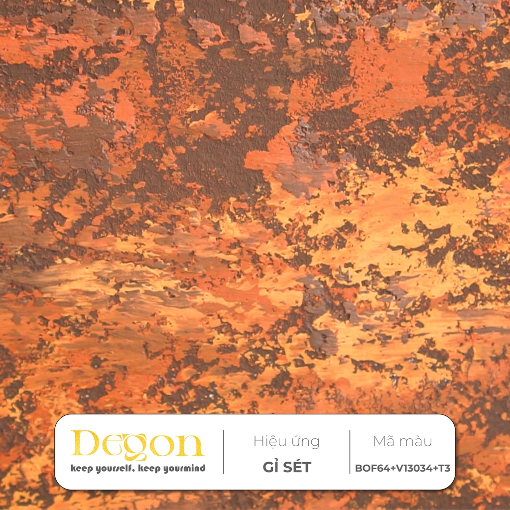 • Vẻ đẹp chân thực tuyệt đối: Với sự phối trộn tinh tế giữa các tông màu cam cháy, nâu đồng, đỏ gạch và đen xám, De'gon tạo ra những mảng màu loang lổ tự nhiên, mô phỏng hoàn hảo bề mặt kim loại bị oxy hóa.