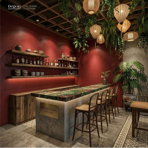 Có thể làm tường chính, quầy bar, background check-in, khu chụp ảnh cho quán hoặc toàn bộ không gian.