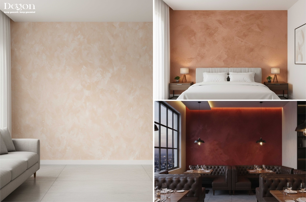 Q2: Sơn hiệu ứng này có bền màu không? A: Rất bền. De’gon áp dụng công nghệ bảo vệ bề mặt giúp chống tia UV, chống phai màu và chịu thời tiết tốt trong nhiều năm.